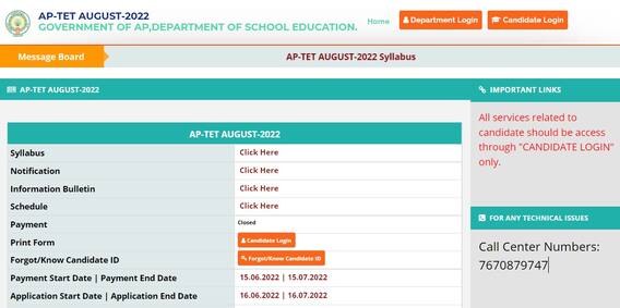 ఆగస్టు 6 నుంచి 21 వరకు ఆన్లైన్ విధానంలో టెట్ పరీక్షలు నిర్వహించనున్నారు. ఆగస్టు 31న టెట్ కీ విడుదల చేసి, సెప్టెంబర్ 14న ఫలితాలు విడుదల చేయనున్నారు. టెట్కి సంబంధించిన పూర్తి సమాచారం aptet.apcfss.in వెబ్సైట్లో ఉంచారు.