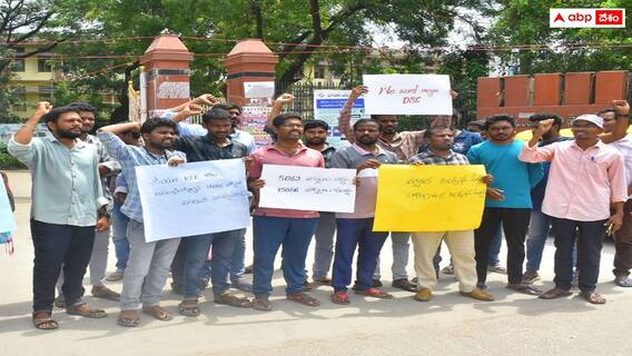 Telangana Teacher Posts: తెలంగాణలో ఉపాధ్యాయుల బదిలీలు, ప్రమోషన్లు ఇవ్వడంతో ఏర్పడబోయే 15 వేల ఖాళీలను.. తాజా డీఎస్సీ నోటిఫికేషన్లో కలపాలని ఉద్యోగార్థులు డిమాండ్ చేస్తున్నారు. ఖాళీలను డీఎస్సీ నోటిఫికేషన్లో కలపాలంటూ అభ్యర్థులు జూన్ 24న ఈ మేరకు రాష్ట్రవ్యాప్తంగా గ్రంథాలయాలు, స్టడీ సెంటర్ల వరద్ వద్ద ఆందోళనలు చేశారు. కొత్తగా టెట్ పాసైన వాళ్లు కూడా డీఎస్సీకి సన్నద్ధమయ్యేందుకు వీలుగా జులైలో నిర్వహించే పరీక్షలను కనీసం 40 రోజులపాటు వాయిదా వేయాలని వారు ప్రభుత్వాన్ని కోరుతున్నారు.