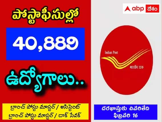 దేశవ్యాప్తంగా ఉన్న వివిధ పోస్టాఫీసుల్లో 40,889 గ్రామీణ డాక్ సేవక్(జీడీఎస్) ఖాళీల భర్తీకి ప్రకటన వెలువడిన సంగతి తెలిసిందే. ఈ పోస్టుల దరఖాస్తు ప్రక్రియ జనవరి 27న ప్రారభంకాగా.. ఫిబ్రవరి 16తో గడువు ముగియనుంది. ఇప్పటివరకు దరఖాస్తు చేసుకోలేని అభ్యర్థులు వెంటనే దరఖాస్తులు సమర్పించాలి. పదోతరగతిలో సాధించిన మార్కులతో ఈ నియామకాలు చేపడతారు. ఎంపికైనవారు బ్రాంచ్ పోస్టు మాస్టర్(బీపీఎం), అసిస్టెంట్ బ్రాంచ్ పోస్టు మాస్టర్(ఏబీపీఎం), డాక్ సేవక్ హోదాలతో విధులు నిర్వహించాల్సి ఉంటుంది. పోస్టును బట్టి రూ.10,000 - రూ.12,000 ప్రారంభ వేతనం అందుకోవచ్చు.