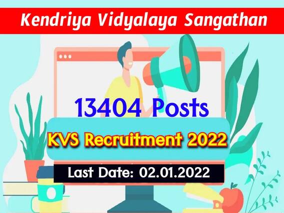 దేశవ్యాప్తంగా ఉన్న కేంద్రీయ విద్యాలయాల్లో (కేవీ) ఖాళీల భర్తీకి న్యూఢిల్లీలోని కేంద్రీయ విద్యాలయ సంగతన్ (కేవీఎస్) నోటిఫికేషన్ విడుదల చేసిన సంగతి తెలిసిందే. దీనిద్వారా 13,404 పోస్టులను భర్తీ చేయనున్నారు. వీటిలో 6990 టీచింగ్, నాన్-టీచింగ్ పోస్టులు ఉండగా, 6414 ప్రైమరీ టీచర్ పోస్టులు ఉన్నాయి. రాతపరీక్ష, ఇంటర్వ్యూ ఆధారంగా ఉద్యోగ ఎంపికలు చేపడతారు. అయితే ఈ ఉద్యోగాల భర్తీకి డిసెంబరు 5 నుంచి ఆన్లైన్ దరఖాస్తు ప్రక్రియ ప్రారంభంకాగా.. జనవరి 2తో దరఖాస్తు గడువు ముగియనుంది. వాస్తవానికి డిసెంబరు 26నే దరఖాస్తు గడువు ముగియాల్సి ఉంది. అయితే అభ్యర్థుల సౌలభ్యం కోసం వారంపాటు (జనవరి 2 వరకు) పొడిగించారు. పోస్టును బట్టి పదోతరగతి, ఇంటర్మీడియట్, సంబంధిత స్పెషలైజేషన్లలో పీజీ/బీఈడీ/పీజీ డిప్లొమా/బీఈ/బీటెక్/ఎమ్మెస్సీ/బీఎస్సీ/ఎమ్సీఏ/బీసీఏ/డిప్లొమా లేదా తత్సమాన కోర్సులో ఉత్తీర్ణత సాధించి ఉండాలి. ఆయా పోస్టులకు దరఖాస్తు చేసుకునే అభ్యర్ధుల వయసు తప్పనిసరిగా 27 నుంచి 50 ఏళ్ల మధ్య ఉండాలి. కేంద్రీయ విద్యాలయాల్లో ఇప్పటికే పనిచేస్తున్నవారికి వయోపరిమితి విషయంలో ఎటువంటి ఆంక్షలు ఉండవు.