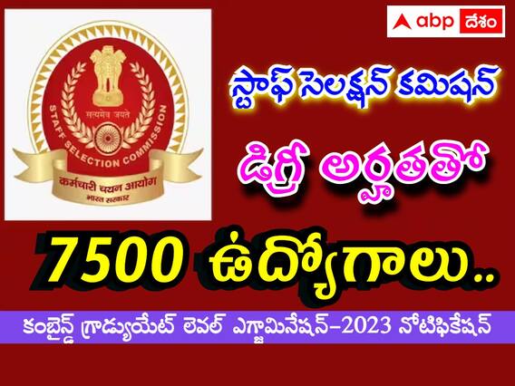 కేంద్ర ప్రభుత్వంలోని వివిధ విభాగాల్లో గ్రూప్-బి, గ్రూప్-సి పోస్టుల భర్తీకి నిర్వహించే 'కంబైన్డ్ గ్రాడ్యుయేట్ లెవల్ ఎగ్జామినేషన్-2023' నోటిఫికేషన్ను స్థాఫ్ సెలక్షన్ కమిషన్ విడుదల చేసింది. దీనిద్వారా దాదాపు 7500 ఖాళీలను భర్తీ చేయనున్నారు. అవసరాలకు అనుగుణంగా పోస్టుల సంఖ్య పెరిగే అవకాశమూ ఉంది. ఏదైనా డిగ్రీ అర్హత ఉన్న అభ్యర్థులు ఈ ఉద్యోగాలకు దరఖాస్తు చేసుకోవడానికి అర్హులు. పోస్టులవారీగా అదనపు విద్యార్హతలు నిర్ణయించారు. అభ్యర్థులు ఆన్లైన్ విధానంలో దరఖాస్తు చేసుకోవాల్సి ఉంటుంది. ఏప్రిల్ 3 నుంచి మే 3 వరకు దరఖాస్తు ప్రక్రియ కొనసాగనుంది. రెండంచెల (టైర్-1,టైర్-2) పరీక్షల ద్వారా అభ్యర్థులను ఎంపికచేస్తారు.