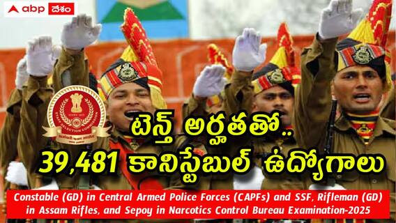 SSC Constable GD Notification 2025: కేంద్ర భద్రత బలగాల్లో కానిస్టేబుల్ జనరల్ డ్యూటీ (Constable GD), రైఫిల్ మ్యాన్ జనరల్ డ్యూటీ (Rifle Man GD) పోస్టుల భర్తీకి స్టాఫ్ సెలక్షన్ కమిషన్ సెప్టెంబరు 5న నోటిఫికేషన్ విడుదల చేసింది. దీనిద్వారా మొత్తం 39,481 ఖాళీలను భర్తీచేయనున్నారు. మొత్తం ఖాళీల్లో పురుషులకు 35,612 పోస్టులు; మహిళలకు 3,869 పోస్టులు కేటాయించారు. ఇందులో బోర్డర్ సెక్యూరిటీ ఫోర్స్(BSF)లో 15,654 పోస్టులు; సెంట్రల్ ఇండస్ట్రియల్ సెక్యూరిటీ ఫోర్స్(CISF)లో 7,145 పోస్టులు; సెంట్రల్ రిజర్వ్డ్ పోలీస్ ఫోర్స్(CRPF)లో 11,541 పోస్టులు; సశస్త్ర సీమాబల్(SSB)లో 819 పోస్టులు; ఇండో-టిబెటన్ బోర్డర్ పోలీస్ ఫోర్సెస్(ITBP)లో 3,017 పోస్టులు; అస్సాం రైఫిల్స్(AR)లో 1,248 పోస్టులు; స్పెషల్ సెక్యూరిటీ ఫోర్సెస్(SSF)లో 35 పోస్టులు, నార్కొటిక్స్ కంట్రోల్ బ్యూరోలో 22 పోస్టులు ఉన్నాయి.