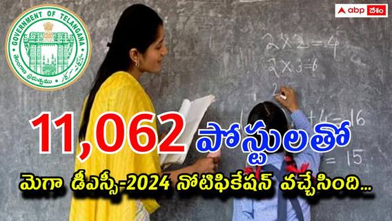 Telangana DSC 2024 Notification: తెలంగాణ(Telagnana)లోని ప్రభుత్వ పాఠశాలల్లో ఖాళీల భర్తీకి సంబంధించి 'మెగా డీఎస్సీ-2024(Mega Dsc Notification2024 )' నోటిఫికేషన్ ఫిబ్రవరి 29న వెలువడింది. ముఖ్యమంత్రి రేవంత్ రెడ్డి(Revanth Reddy) తన నివాసం నుంచి డీఎస్సీ నోటిఫికేషన్ను విడుదల చేశారు. దీనిద్వారా మొత్తం 11,062 ఖాళీలను భర్తీ చేయనున్నారు. వీటిల్లో గత కేసీఆర్ ప్రభుత్వం జారీ చేసిన 5,089 పోస్టులు కూడా ఉన్నాయి. ఈ పోస్టులకు అదనంగా 4,957 టీచర్ పోస్టులు, మరో 1, 016 స్పెషల్ ఎడ్యుకేషన్ టీచర్ పోస్టులు కలిపి మొత్తం 11, 062 పోస్టులకు కొత్త నోటిఫికేషన్ను ప్రభుత్వం జారీచేసింది. ఇక మొత్తంగా చూస్తే.. సెకండరీ గ్రేడ్ టీచర్ (ఎస్జీటీ)(SGT Posts)-6,508 పోస్టులు, స్కూల్ అసిస్టెంట్(School Assistants)-2,629 పోస్టులు, లాంగ్వేజ్ పండిట్(Laungage Pandi Posts)-727, పీఈటీలు(P.E.T. Posts)-182 పోస్టులు, ప్రత్యేక కేటగిరీ విభాగంలో స్కూల్ అసిస్టెంట్లు 220 పోస్టులు, ఎస్జీటీలు 796 పోస్టులు ఉన్నాయి.