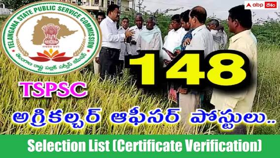 తెలంగాణ అగ్రికల్చర్ అండ్ కోఆపరేషన్ విభాగంలో ఖాళీల భర్తీకి టీఎస్పీఎస్సీ 2022, డిసెంబరు 28న నోటిఫికేషన్ విడుదల చేసిన సంగతి తెలిసిందే. దీనిద్వారా మొత్తం 148 అగ్రికల్చర్ ఆఫీసర్ పోస్టులను భర్తీ చేయనున్నారు. వీటిలో అగ్రికల్చర్ బీఎస్సీ అర్హత ఉన్నవారు ఈ ఉద్యోగాలకు దరఖాస్తులు స్వీకరించారు. ఈ పోస్టుల భర్తీకి 2023, జనవరి 10 నుంచి 30 వరకు దరఖాస్తులు స్వీకరించారు. మే 16న కంప్యూటర్ ఆధారిత రాతపరీక్ష నిర్వహించారు. పరీక్షకు సంబంధించిన ప్రాథమిక ఆన్సర్ కీని మే 17న కమిషన్ విడుదల చేసింది. అభ్యర్థుల నుంచి జూన్ 1 నుంచి 3 వరకు అభ్యంతరాలు స్వీకరించింది. తర్వాత 2024 ఫిబ్రవరి 6న ఫైనల్ ఆన్సర్ కీని విడుదల చేసింది. ఫిబ్రవరి 17న అభ్యర్థులు ర్యాంకులను ప్రకటించింది. తాజాగా సర్టిఫికేట్ వెరిఫికేషన్కు అర్హత సాధించిన అభ్యర్థుల వివరాలను టీఎస్పీఎస్సీ ప్రకటించింది.
