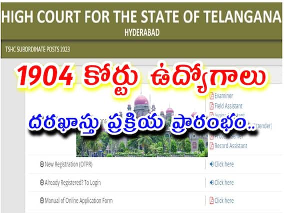 తెలంగాణ హైకోర్టు జిల్లా కోర్టులతో పాటు హైదరాబాద్లోని వివిధ న్యాయస్థానాల్లో ఖాళీగా ఉన్న పలు ఉద్యోగాల భర్తీకి నోటిఫికేషన్లు వెలువడిన సంగతి తెలిసిందే. వీటిద్వారా మొత్తం 1,904 ఖాళీలను భర్తీ చేయనున్నారు. ఖాళీల్లో ఆఫీస్ సబార్డినేట్-1226, జూనియర్ అసిస్టెంట్-275, ప్రాసెస్ సర్వర్-163, రికార్డ్ అసిస్టెంట్-97, ఫీల్డ్ అసిస్టెంట్-77, ఎగ్జామినర్-66 పోస్టులు ఉన్నాయి. ఈ పోస్టుల భర్తీకి జనవరి 11 నుంచి ఆన్లైన్ దరఖాస్తు ప్రక్రియ ప్రారంభమైంది. పోస్టులవారీగా విద్యార్హతలు నిర్ణయించారు. సరైన అర్హతలున్న అభ్యర్థులు జనవరి 31 వరకు తమ దరఖాస్తులు సమర్పించవచ్చు. రాతపరీక్ష ద్వారా ఉద్యోగ ఎంపికలు చేపట్టనున్నారు. పరీక్షకు సంబంధించిన హాల్టికెట్లు ఫిబ్రవరి 15న వెలువనున్నాయి. అధికారిక వెబ్సైట్లో హాల్టికెట్లను అందుబాటులో ఉంచనున్నారు. ఆయా ఉద్యోగాలకు కంప్యూటర్ ఆధారిత పరీక్షను మార్చిలో నిర్వహిస్తారు. పరీక్ష తేదీలను త్వరలో వెల్లడించనున్నారు. ఖాళీలు, అర్హతలు ఇతర వివరాల్లో అభ్యర్థులకు ఏమైనా సందేహాలుంటే నివృత్తికి హెల్ప్డెస్క్ ఫోన్ నెంబరు 040-23688394 ద్వారా లేదా ఈ-మెయిల్: tshc@telangana.gov.in ద్వారా సంప్రదించవచ్చు. పని దినాల్లో మాత్రమే హెల్ప్డెస్క్ అందుబాటులో ఉంటుంది.