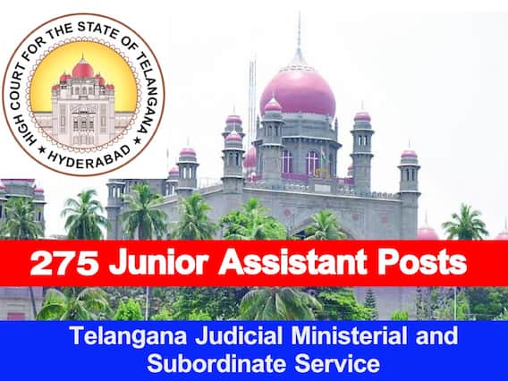 తెలంగాణ రాష్ట్ర హైకోర్టు తెలంగాణ జ్యుడీషియల్ మినిస్టీరియల్ & సబార్డినేట్ సర్వీసులో జూనియర్ అసిస్టెంట్ పోస్టుల భర్తీకి నోటిఫికేషన్ విడుదలచేసింది. దీనిద్వారా వివిధ జిల్లా కోర్టుల్లో మొత్తం 275 పోస్టులను భర్తీ చేయనున్నారు. డిగ్రీ అర్హత ఉన్నవారు దరఖాస్తు చేసుకోవడానికి అర్హులు. సరైన అర్హతలున్న అభ్యర్థులు జనవరి 11 నుంచి 31 వరకు ఆన్లైన్ విధానంలో తమ దరఖాస్తులు సమర్పించాల్సి ఉంటుంది. రాతపరీక్ష ద్వారా ఉద్యోగ ఎంపికలు చేపడతారు.