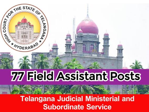 తెలంగాణ రాష్ట్ర హైకోర్టు తెలంగాణ జ్యుడీషియల్ మినిస్టీరియల్ & సబార్డినేట్ సర్వీసులో ఫీల్డ్ అసిస్టెంట్ పోస్టుల భర్తీకి నోటిఫికేషన్ విడుదలచేసింది. దీనిద్వారా వివిధ జిల్లా కోర్టుల్లో మొత్తం 77 పోస్టులను భర్తీ చేయనున్నారు. డిగ్రీ అర్హత ఉన్నవారు దరఖాస్తు చేసుకోవడానికి అర్హులు. సరైన అర్హతలున్న అభ్యర్థులు జనవరి 11 నుంచి 31 వరకు ఆన్లైన్ విధానంలో తమ దరఖాస్తులు సమర్పించాల్సి ఉంటుంది. రాతపరీక్ష ద్వారా ఉద్యోగ ఎంపికలు చేపడతారు.