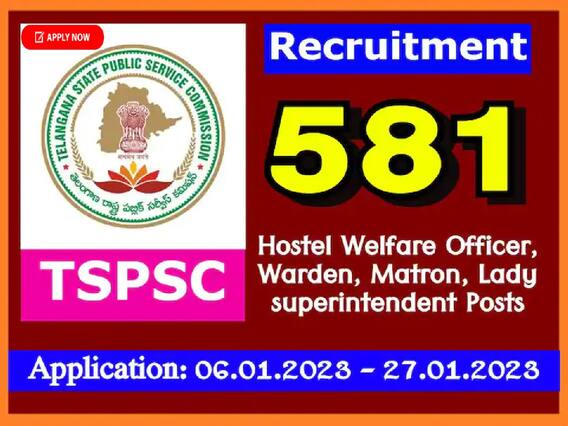 తెలంగాణ రాష్ట్ర గురుకుల సంక్షేమ వసతి గృహాల్లో (బీసీ, ఎస్సీ, ఎస్టీ హాస్టల్స్) ఖాళీల భర్తీకి డిసెంబరు 22న టీఎస్పీఎస్సీ నోటిఫికేషన్ విడుదల చేసిన సంగతి తెలిసిందే. దీనిద్వారా మొత్తం 581 హాస్టల్ వెల్ఫేర్ ఆఫీసర్, వార్డెన్, మ్యాట్రన్, మహిళా సూపరింటెండెంట్ ఖాళీలను భర్తీ చేయనున్నారు. డిగ్రీతోపాటు బీఈడీ/డీఈడీ అర్హత ఉన్న అభ్యర్థులు దరఖాస్తు చేసుకోవడానికి అర్హులు. ఈ పోస్టుల భర్తీకి జనవరి 6 నుంచి ఆన్లైన్ దరఖాస్తు ప్రక్రియ ప్రారంభమైంది. సరైన అర్హతలున్న అభ్యర్థులు జనవరి 27న సాయంత్రం 5 గంటల వరకు దరఖాస్తులు సమర్పించవచ్చు. రాతపరీక్ష ద్వారా ఉద్యోగ ఎంపికలు చేపడతారు.