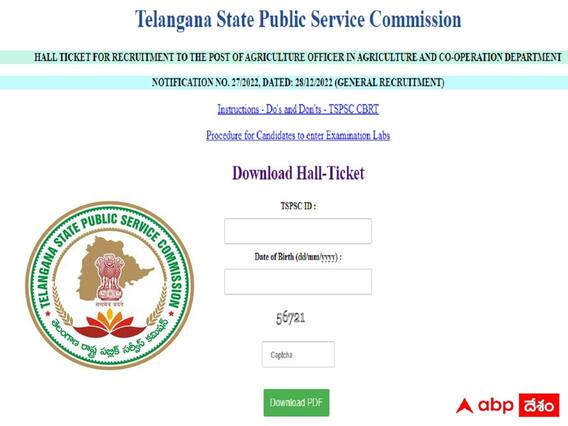తెలంగాణలో అగ్రికల్చర్ ఆఫీసర్ పోస్టుల భర్తీకి నిర్వహించనున్న రాతపరీక్ష హాల్టికెట్లు అందుబాటులోకి వచ్చాయి. టీఎస్పీఎస్సీ అధికారిక వెబ్సైట్లో హాల్టికెట్లను అందుబాటులో ఉంచారు. ఉద్యోగాలకు దరఖాస్తు చేసుకున్న అభ్యర్థులు తమ టీఎస్పీఎస్సీ ఐడీ, పుట్టినతేదీ వివరాలు నమోదుచేసి అధికారిక వెబ్సైట్ నుంచి హాల్టికెట్లను డౌన్లోడ్ చేసుకోవాల్సి ఉంటుంది.