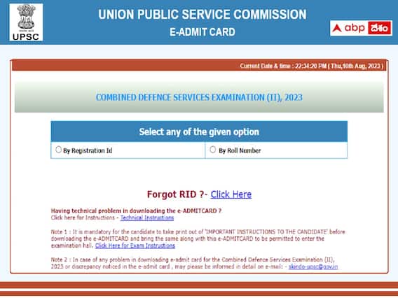 త్రివిధ దళాల్లో ఉన్నత ఉద్యోగాల భర్తీకి ఉద్దేశించిన కంబైన్డ్ డిఫెన్స్ సర్వీసెస్ ఎగ్జామినేషన్(సీడీఎస్ఈ)-2023 రాత పరీక్ష ఈ-అడ్మిట్ కార్డులను యూనియన్ పబ్లిక్ సర్వీస్ కమిషన్(యూపీఎస్సీ) ఆగస్టు 10న విడుదల చేసింది. అధికారిక వెబ్సైట్లో అడ్మిట్ కార్డులను అందుబాటులో ఉంచింది. సీడీఎస్ఈ పరీక్షకు దరఖాస్తు చేసుకున్న అభ్యర్థులు తమ రిజిస్ట్రేషన్ ఐడీ లేదా రూల్ నెంబర్ వివరాలు నమోదుచేసి అడ్మిట్కార్డులు డౌన్లోడ్ చేసుకోవాల్సి ఉంటుంది. ముందుగా ప్రకటించిన షెడ్యూలు ప్రకారం సెప్టెంబర్ 3న సీడీఎస్ఈ రాతపరీక్ష నిర్వహించనున్నారు.