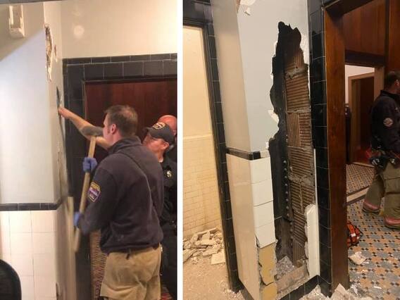 న్యూయార్క్లోని ఓ థియేటర్ నుంచి 911కు ఫోన్ కాల్ వచ్చింది. ఎవరో తమ థియేటర్ బాత్రూమ్లో ఇరుక్కున్నాడని ఫోన్లో చెప్పారు. దీంతో పోలీసులు వెంటనే సైరాకస్ ఫైర్ డిపార్ట్మెంట్కు ఉదయం 7.32 గంటలకు సమాచారం అందించారు. 326 సౌత్ సలీనా స్ట్రీట్లోని ఓ ప్రముఖ థియేటర్ బాత్రూమ్ గోడలో ఇరుక్కున్న వ్యక్తిని రక్షించాలని చెప్పారు. దీంతో అగ్నిమాపక సిబ్బంది హుటాహుటిన అక్కడికి చేరుకున్నారు.