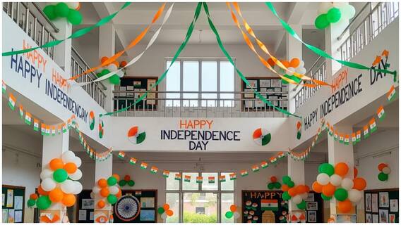 పాఠశాల గేటు వద్ద అలంకరణ ప్రారంభించాలి. ద్వారం దగ్గర.. ఆరెంజ్, తెలుపు, ఆకుపచ్చ బెలూన్లు, జెండాలు, బంతిపూల దండలను కట్టవచ్చు. బులిటెన్ బోర్డులను స్వాతంత్య్ర సమరయోధుల కోట్స్, స్వాతంత్య్రానికి సంబంధించిన ఫోటోలతో నింపవచ్చు. విద్యార్థులు తయారు చేసిన కాగితపు పావురాలు లేదా అశోక చక్రం వంటి 3D అంశాలను బోర్డులపై ఉంచితే.. లుక్ బాగుంటుంది.