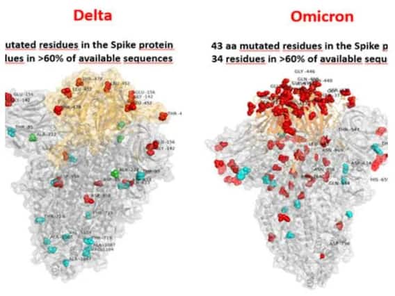 ఈ ఫోటో ఒమిక్రాన్ వేరియంట్ మానవకణాలపై ఎలా పనిచేస్తుందో తెలియజేసేది. దిగ్భ్రాంతికరమైన విషయం ఏంటంటే ఓమ్రికాన్ వైరస్ వేరియంట్ మానవ కణాలతో సంఘర్షణ చెందే ప్రాంతంలో ఎక్కువ మ్యుటేషన్లు సంభవించినట్టు కనుగొన్నారు. మ్యుటేషన్లు అధికంగా కలుగుతుండడం వల్ల మానవ శరీరం ఎలా స్పందిస్తుందో, వైరస్ స్పైక్స్ ఎలా మానవకణంలోకి ప్రవేశించడానికి ఆస్కారం ఉంటుందో టీకాలు కనిపెట్టిన శాస్త్రవేత్తలే చెప్పాలి. ఈ మొదటి చిత్రంలో డెల్టా వేరియంట్తో, ఒమిక్రాన్ వేరియంట్ ను పోల్చారు పరిశోధకులు. ఈ ఫోటో ద్వారా డెల్టా కన్నా ఒమిక్రాన్ వేరియంట్ వల్లే అధికంగా మ్యుటేషన్లు జరుగుతున్నట్టు అర్థం అవుతోంది. అందుకే ప్రపంచఆరోగ్యసంస్థ కూడా ఈ కొత్త వేరియంట్ ను చూసి భయపడుతోంది. ఈ వేరియంట్ వల్ల మూడో వేవ్ వస్తే పరిస్థితి ఎలా ఉంటుందో అని కలవరపడుతోంది.