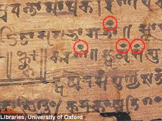 గణితంలో భారత్ చేసిన ప్రయోగాలు ప్రపంచ దేశాలను ఆకర్షించాయి. ప్రత్యేకించి అరబ్బులు భారత్ కు రావటం ఇక్కడి గణిత నియమాలను నేర్చుకోవటం దాన్ని అరబ్ దేశాలకు తీసుకెళ్లటం ఇలా సున్నా అరబిక్ నెంబర్స్ లో భాగమైంది. 1881 లో ప్రస్తుత పాకిస్థాన్ లో ని పెషావర్ దగ్గర మర్దాన్ అనే ఊరికి సమీపంలోని భక్షాలీ అనే గ్రామంలో ఓ రైతు భూమిని దున్నుతుంటే పురాతన లిపి ఉన్న చెట్టు కలప దొరికింది. దాని మీద రీసెర్చ్ చేసిన శాస్త్రవేత్తలకు తెలిసిన విషయం ఏంటంటే ఆ లిపి క్రీ.శ 224-383 కాలం నాటిది. దాన్ని భక్షాలి లిపి అని పేరు పెట్టారు. అది ఎందుకు అంత ఇంపార్టెంట్ అయ్యిందంటే ఆ లిపిలో తొలిసారిగా సున్నాను గుర్తించారు. ప్రపంచంలో ఇప్పటివరకూ సున్నాకు సంబంధించిన లభ్యమైన ఆధారాల్లో ఇదే పాతది అవటంతో సున్నా భారత్ నుంచే ప్రపంచానికి అందిందనే విషయానికి బలమైన ఆధారం లభించింది.