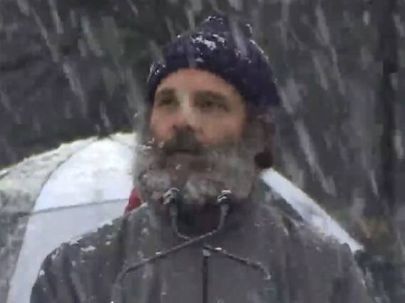 మంచు కురుస్తుండగా రాహుల్ పక్కన ఉన్న వాళ్లు ఆయనకు గొడుగు పట్టారు. ఆ గొడుగునీ పక్కన పెట్టేసి అలాగే ప్రసంగం చేశారు.