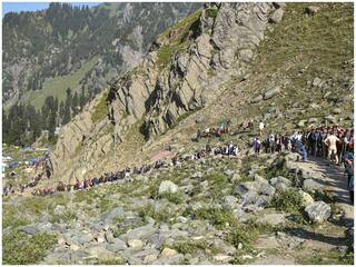జమ్మూకశ్మీర్లో భారీ వర్షాల కారణంగా మంగళవారం యాత్రను తాత్కాలికంగా నిలుపుదల చేశారు. పహల్గామ్, బల్తాన్ రూట్లలోని క్యాంపుల వద్దనే యాత్రికులను ఆపేశారు. వాతావరణం మెరుగుపడటంతో బుధవారం ఉదయం యాత్రను తిరిగి ప్రారంభించారు. అమరనాథ్ యాత్ర సోమవారం నాటికి ఐదో రోజుకు చేరగా.. ఒకే రోజు 19వేల మంది భక్తులు బాబా బర్ఫానీని దర్శించుకున్నారు. యాత్ర కోసం జమ్మూకశ్మీర్ ప్రభుత్వం పటిష్టమైన భద్రతా ఏర్పాట్లు చేసింది. యాత్ర సాగుతున్న కొద్ది యాత్రికుల సంఖ్య పెరుగుతోందని అమర్నాథ్ క్షేత్ర ట్రస్ట్ బోర్డ్ తెలిపింది. దేశం నలుమూలల నుంచి భక్తులు జమ్మూకు తరలివస్తున్నారు. అయితే వర్షాలు వారిక ిగండంగా మారాయి.