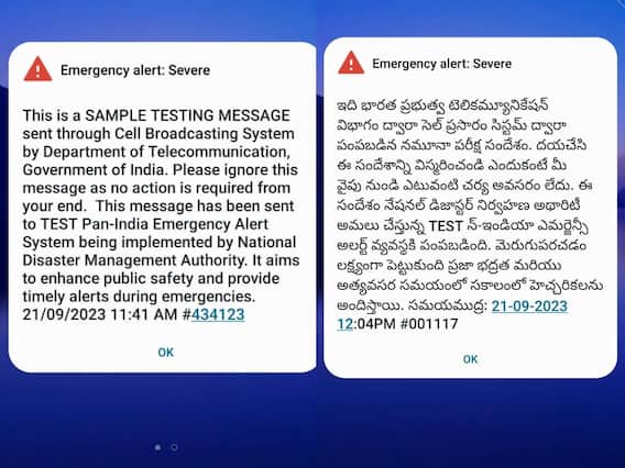 అయితే భూకంపాలు, సునామీలు, ఆకస్మిక వరదల్లాంటి విపత్తుల సమయంలో ప్రజలను అప్రమత్తం చేసేందుకు జాతీయ విపత్తు నిర్వహణ సంస్థతో కలిసి కేంద్రం... ఈ ఎమర్జెన్సీ అలర్ట్ వ్యవస్థను రూపొందించింది. ఈక్రమంలోనే దీన్ని ఓసారి పరీక్షించగా.. గురువారం ఉదయం 11.41 గంటల ప్రాంతంలో తెలుగు రాష్ట్రాలతో పాటు దేశవ్యాప్తంగా కొంత మందికి ఈ మెసేజ్ వచ్చింది. తెలుగు, హిందీ, ఇంగ్లీష్ తో పాటు పలు ప్రాంతీయ భాషల్లో ఈ అలర్ట్ ను పంపించారు. కేవలం మెసేజ్ యే కాకుండా ఆడియో కూడా వచ్చింది.