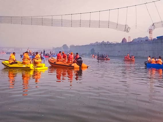 బ్రిటీష్ కాలం నాటి తీగల వంతెన ఇటీవల కుప్పకూలింది. ప్రమాద సమయంలో వంతెనపై దాదాపు 500 మంది ఉన్నట్లు సమాచారం. వంతెన కూలడం వల్ల చాలామంది నీటిలో పడి గల్లంతయ్యారు. సందర్శకులు నదిలో పడిపోగానే ఆ ప్రాంతంలో భీతావహ పరిస్థితులు కనిపించాయి.