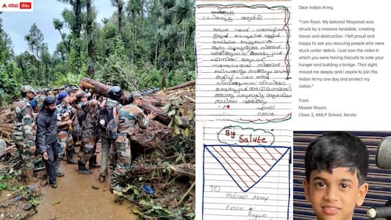 బాధితులను రక్షించేందుకు ఆర్మీ శ్రమిస్తోన్న తీరును చూసిన వయనాడ్కు చెందిన మూడో తరగతి విద్యార్థి రాయన్ భారత ఆర్మీకి లేఖ రాశాడు. 'ప్రియమైన ఇండియన్ ఆర్మీ.. నా జన్మస్థలం వయనాడ్లో ప్రకృతి బీభత్సం సృష్టించింది. కొండ చరియలు విరిగిపడి ఎందరో విగతజీవులుగా మారారు. శిథిలాల కింద చిక్కుకున్న ఎంతోమంది ప్రజలను మీరు మీ ప్రాణాలకు తెగించి కాపాడడం చూశాను. ఆహారం అందుబాటులో లేకపోయినా కేవలం బిస్కెట్లు తింటూనే సరిపెట్టుకుంటున్నారు. బాధితులకు త్వరగా సహాయం అందేలా చర్యలు చేపడుతున్నారు. బాధితులను కాపాడేందుకు వంతెనలు నిర్మిస్తున్నారు. ప్రజల ప్రాణాలు కాపాడేందుకు మీరు శ్రమిస్తోన్న తీరు చూస్తుంటే చాలా గర్వంగా ఉంది. మీకు సెల్యూట్. నేను కూడా ఏదో ఒక రోజు సైన్యంలో చేరి మీలాగా దేశాన్ని రక్షిస్తాను.' అంటూ లేఖలో పేర్కొన్నాడు.