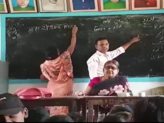 ఇటీవల బీహార్లో స్కూళ్లను విలీనం చేశారు. ఇలా విలీనం చేసిన స్కూళ్లలో విద్యార్థులు పెరిగిపోయారు. కానీ తరగతి గదుల్లేవు. దీంతో ఆదర్శ్ మిడిల్ స్కూల్ లో రెండు తరగతుల విద్యార్థుల్ని కూర్చోబెట్టారు. బ్లాక్ బోర్డును టీచర్లు సగం సగం పంచుకున్నారు. ఓ వైపు ఉర్దూ చెప్పడం ప్రారంభించారు. మరోవైపు టీచర్ హిందీ చెప్పడం ప్రారంభించారు. ఈ వీడియో ఇప్పుడు సోషల్ మీడియాలో వైరల్ అవుతోంది.