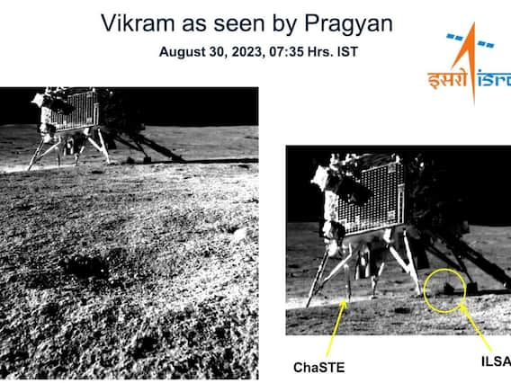 చంద్రయాన్ 3 కి సంబంధించి మరో ఇంట్రెస్టింగ్ అప్డేట్ ఇచ్చింది ఇస్రో. చంద్రుడి సౌత్పోల్పై ల్యాండ్ అయ్యి అక్కడి నుంచి డేటాని పంపిస్తున్న ప్రజ్ఞాన్ రోవర్ ల్యాండర్ విక్రమ్ని (Lander Vikram) ఫొటో తీసి పంపింది. నావిగేషన్ కెమెరాతో ఈ ఫొటో క్లిక్ చేసింది. చంద్రుడిపై ల్యాండ్ అయిన తరవాత ప్రజ్ఞాన్ రోవర్ తీసిన తొలి ఫొటో ఇదే. ఇప్పటి వరకూ అక్కడి నుంచి వచ్చిన ఫొటోలు, వీడియోలు అన్నీ ల్యాండర్ విక్రమ్ తీసినవే. ఇదే విషయాన్ని ఇస్రో అధికారికంగా వెల్లడించింది. ట్విటర్లో విక్రమ్ ల్యాండర్ ఫొటోని షేర్ చేసింది.