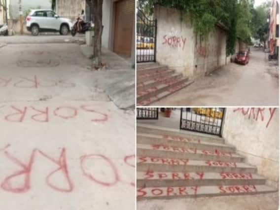 కర్ణాటక బెంగళూరులోని ఓ కళాశాల ప్రాంగణమంతా సారీ.. సారీ అనే పెయింటింగ్లతో నింపేశారు ఆకతాయిలు. సుంకదకట్టె ప్రాంతంలో కొంతమంది ఆకతాయిలు చేసిన ఈ పని పోలీసులకు తలనొప్పులు తెచ్చి పెట్టింది. సుంకదకట్టెలోని ఓ ప్రైవేట్ కళాశాల గోడలు, మెట్లతో పాటు పాఠశాల చుట్టూ ఉన్న వీధుల్లో కొంతమంది ఆకతాయిలు సారీ..సారీ.. అంటూ పెయింట్తో రాశారు. ఉదయాన్నే చూసిన స్థానికులు పోలీసులకు సమాచారం అందించారు.
