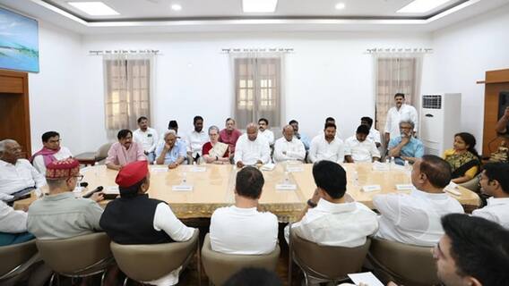 INDI bloc Meeting in Delhi: సార్వత్రిక ఎన్నికల ఫలితాల తర్వాత కేంద్రంలో ప్రభుత్వ ఏర్పాటు కోసం ప్రయత్నాలు సాగుతున్నాయి. ఎన్డీఏకి స్పష్టమైన మెజారిటీ ఉండడంతో ఆ కూటమే ప్రభుత్వాన్ని ఏర్పాటు చేసే అవకాశాలు ఉన్నాయి. మరోవైపు, ఇండి కూటమి నేతలు కూడా సమావేశం ఏర్పాటు చేసుకున్నారు. ఏఐసీసీ అధ్యక్షుడు మల్లిఖార్జున ఖర్గే నివాసంలో ఇండి కూటమిలోని పార్టీ నేతల సమావేశం జరిగింది. ఈ సందర్భంగా ఖర్గే మాట్లాడుతూ.. ఎన్నికల్లో మంచి ఫలితాలు సాధించామని, కూటమిలోని పార్టీలు అన్నీ కలిసి కట్టుగా ఎన్డీఏపై పోరాడారని అన్నారు.