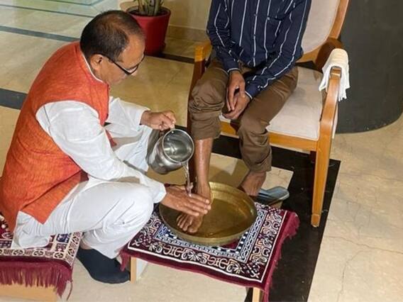 మధ్యప్రదేశ్లో ఆదివాసీపై ఓ వ్యక్తి యూరినేట్ చేసిన వీడియో వైరల్ అవడమే కాకుండా రాజకీయాల్నీ వేడెక్కించింది. ఆ నిందితుడుని వెంటనే అరెస్ట్ చేయాలని ప్రతిపక్షాలు డిమాండ్ చేశాయి. ప్రభుత్వంపై ఒత్తిడి తీసుకొచ్చాయి. వెంటమనే అప్రమత్తమైన ముఖ్యమంత్రి శివరాజ్ సింగ్ చౌహాన్ ప్రభుత్వం...ఆ నిందితుడుని అరెస్ట్ చేయాలని పోలీసులకు ఆదేశాలిచ్చింది. పోలీసులు ఆ వ్యక్తిని అదుపులోకి తీసుకున్నారు. మెడికల్ టెస్ట్లు నిర్వహించనున్నారు. ఈ క్రమంలోనే మధ్యప్రదేశ్ ముఖ్యమంత్రి శివరాజ్ సింగ్ చౌహాన్..బాధితుడిని కలిశారు. భోపాల్లోని తన నివాసానికి స్వయంగా ఆహ్వానించారు. అంతే కాదు. వచ్చీ రాగానే ఆయనను కుర్చీలో కూర్చోబెట్టి కాళ్లు కడిగారు. ఈ వీడియో వైరల్ అవుతోంది. "ఆ వీడియో చూసి నాకు చాలా బాధగా అనిపించింది. నన్ను క్షమించండి. ప్రజలే నాకు దేవుళ్లతో సమానం" అని బాధితుడితో చెప్పారు శివరాజ్ సింగ్ చౌహాన్. కాళ్లు కడిగిన తరవాత ఆయనకు పూల మాల వేసి గౌరవించారు. ఆ తరవాత శాలువా కప్పారు. చాలా సేపు పక్కనే కూర్చుని మాట్లాడారు. ఇలా జరిగినందుకు క్షమాపణలు చెప్పారు. ఈ ఘటనపై కాంగ్రెస్ తీవ్ర విమర్శలు చేసింది. ఆదివాసీలపై బీజేపీ ప్రభుత్వానికి ఉన్న ప్రేమ ఇదే అంటూ చురకలు అంటించింది. విమర్శలు ఎక్కువవడం వల్ల పోలీసులు నిందితుడిపై కేసు నమోదు చేయడమే కాకుండా ఇంటిని కూడా కూల్చేశారు. బుల్డోజర్తో పూర్తిగా ధ్వంసం చేశారు. అది అక్రమ నిర్మాణమని వివరణ ఇచ్చారు.