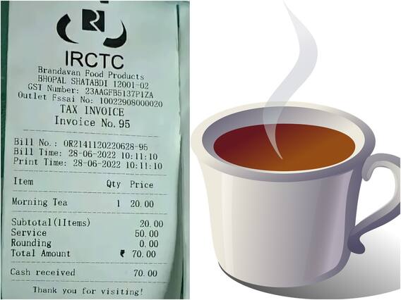 దిల్లీ నుంచి భోపాల్ మధ్య ప్రయాణించే భోపాల్ శతాబ్ధి ఎక్స్ప్రెస్లో జూన్ 28న బాధిత వ్యక్తి ప్రయాణించాడు. ఉదయం టీ కోసం 20 రూ. చార్జ్ చేసింది ఐఆర్సీటీసీ. అయితే సర్వీస్ ఛార్జ్ పేరిట ఏకంగా రూ.50 తీసుకుంది. ఇది చూసి షాకైన పాసింజర్.. జీఎస్టీ బాదుడంటూ సోషల్ మీడియాలో ఆ బిల్లును పోస్ట్ చేశాడు.