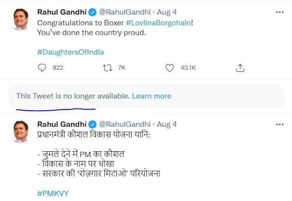 వివాదానికి దారి తీసిన రాహుల్ గాంధీ ట్వీట్ను ట్విట్టర్ డిలీట్ చేసింది. హత్యాచారానికి గురైన బాలిక తల్లిదండ్రులను రెండు రోజుల క్రితం రాహుల్ గాంధీ కలిశారు. న్యాయం జరిగే వరకు బాధితులకు అండగా ఉంటామంటూ వారికి భరోసా ఇచ్చారు. ఈ సందర్భంగా తీసిన ఫొటోను తన ట్విట్టర్ అకౌంట్లో రాహుల్ పోస్టు చేశారు.