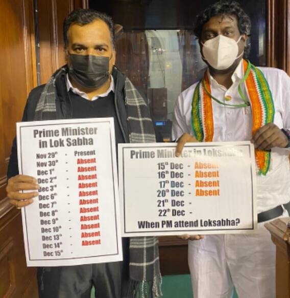 ప్రధానమంత్రి నరేంద్రమోడీ ఈ పార్లమెంట్ సమావేశాలు ప్రారంభమైన తర్వాత ఒక్క రోజు అంటే ఒక్కరోజు.. అదీ కూడా ప్రారంభం రోజున మాత్రమే లోక్సభకు హాజరయ్యారు. తర్వాత పార్లమెంట్ కి రాలేదని.. కాంగ్రెస్ ఎంపీలు బయట పెట్టారు. ఎంపీలు మాణిగం ఠాగూర్, విజయ్ వసంత్ పోస్టర్లు తయారు చేసి పార్లమెంట్లో ప్రదర్శించారు. నవంబర్ 29న మాత్రమే మోడీ హాజరయ్యారని..తర్వాత ఒక్క సారి కూడా లోక్సభకు హాజరు కాలేదని.. వారు పోస్టర్లు వేసి ప్రదర్శించారు. విశేషం ఏమిటంటే ఈ మధ్యలో ఆయన బీజేపీ పార్లమెంటరీ పార్టీ సమావేశానికి హాజరయ్యారు కానీ లోక్సభకు హాజరు కాలేదు.