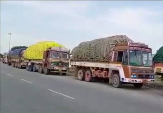 ఆంధ్రప్రదేశ్ సరిహద్దుల్లో వరి ధాన్యం లారీలు వరుసగా నిలబడిపోయాయి. తెలంగాణలోకి రావడానికి పోలీసులు అంగీకరించడం లేదు. ధాన్యం లారీలకు నేషనల్ పర్మిట్ ఉన్నప్పటికీ ప్రభుత్వం ఆదేశించినందున ఆపేస్తున్నట్లుగా డ్రైవర్లకు అధికారులు చెబుతున్నారు. వరి ధాన్యం లోడుతో వస్తున్న లారీలను మాత్రమే నిలిపివేస్తున్నారు. గురువారం నుంచి కర్నూలు జిల్లా నుంచి తెలంగాణ వెళ్లే వరి ధాన్యం లారీలను తెలంగాణ పోలీసులు కర్నూలు శివారులోని పుల్లూర్ టోల్ ప్లాజా వద్ద ఆపేశారు. దీంతో వరి ధాన్యం లారీ లోడ్లు జాతీయ రహదారిపై నిలిచి పోయాయి.