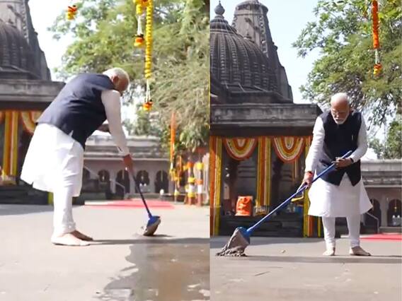 ప్రధాని నరేంద్ర మోదీ మహారాష్ట్రలోని నాసిక్లో ఉన్న కాలారాం ఆలయాన్ని సందర్శించారు. ఈ సందర్భంగా ఆయన ఆలయ ప్రాంగణాన్ని శుద్ధి చేశారు. స్వయంగా బకెట్లో నీళ్లు మోసుకొచ్చారు. ఆలయంలో ఓ చోట నీళ్లు పోసి శుభ్రం చేశారు. స్వచ్ఛ అభియాన్లో భాగంగా అందరూ ఆలయాలు శుద్ధి చేయాలని పిలుపునిచ్చారు. ఆ తరవాత ప్రదక్షిణలు చేశారు.