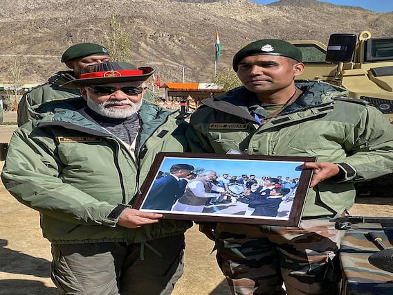 PM Modi in Kargil: ప్రధాని నరేంద్ర మోదీ.. సరిహద్దులో కార్గిల్ సైనికులతో కలిసి దీపావళి జరుపుకున్నారు. ఈ సందర్భంగా మోదీకి ఓ వ్యక్తి సర్ప్రైజ్ ఇచ్చారు. భారత సైన్యంలోని మేజర్ అమిత్ దీపావళి సంబరాల్లో ఉన్న మోదీని సోమవారం కలిశారు. 21 ఏళ్ళ క్రితం మోదీతో కలిసి తాను తీయించుకున్న ఫొటోను మేజర్ అమిత్ చూపించారు. ఇది చూసిన మోదీ ఆయనను ఆత్మీయంగా పలకరించారు.