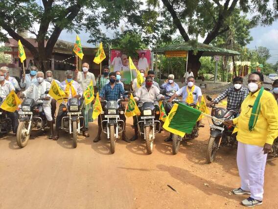 కృష్ణా జిల్లాలో ఇలా.. కృష్ణా జిల్లా గన్నవరంలో ఎమ్మెల్సీ బచ్చుల అర్జునుడు నేతృత్వంలో రైతు పాదయాత్ర నిర్వహించారు. మైలవరంలో మాజీ మంత్రి దేవినేని ఉమామహేశ్వరరావు ఆధ్వర్యంలో ర్యాలీ కొనసాగింది. అవనిగడ్డలో మాజీ ఎంపీ కొనకొళ్ల నారాయణ, తిరువూరులో నియోజకవర్గ ఇన్ఛార్జి దేవదత్, పెనమలూరులో మాజీ ఎమ్మెల్యే బోడె ప్రసాద్, గుడ్లవల్లేరులో రావి వెంకటేశ్వరరావు, పామర్రులో ఉప్పులేటి కల్పన, జగ్గయ్యపేటలో శ్రీరాంతాతయ్య, పెడనలో కాగిత కృష్ణప్రసాద్, నందిగామలో తంగిరాల సౌమ్య ఆధ్వర్యంలో రైతులకు మద్దతుగా నిరసనలు జరిగాయి.