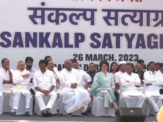 రాహుల్ గాంధీపై అనర్హతా వేటు వేయడంపై కాంగ్రెస్ భగ్గుమంటోంది. రెండ్రోజుల నుంచి పలు రాష్ట్రాల్లో పార్టీ శ్రేణులు ఆందోళనలు చేపడుతున్నాయి. అధిష్ఠానం కూడా ఈ అంశాన్ని చాలా సీరియస్గా తీసుకుంది. దేశవ్యాప్తంగా "సంకల్ప్ సత్యాగ్రహ" నిరసన చేపట్టాలని పిలుపునిచ్చింది. ఈ మేరకు అన్ని చోట్లా ఈ ఆందోళనలు కొనసాగుతున్నాయి. ఢిల్లీలోని రాజ్ఘాట్ వద్ద కాంగ్రెస్ అధ్యక్షుడు మల్లికార్జున్ ఖర్గే, పార్టీ జనరల్ సెక్రటరీ ప్రియాంక గాంధీ సత్యాగ్ర దీక్ష చేసేందుకు పోలీసుల అనుమతి తీసుకున్నారు. కానీ నిరసన మొదలు పెట్టిన కాసేపటికే పోలీసులు వచ్చి అదుపులోకి తీసుకున్నారు. శాంతిభద్రతలను దృష్టిలో పెట్టుకుని దీక్షను విరమించాలని చెప్పారు. ఈ క్రమంలోనే ఎలాంటి ఆందోళనలు జరగకుండా రాజ్ఘాట్ వద్ద పెద్ద ఎత్తున పోలీసులు మొహరించారు. అదానీ వ్యవహారంపై పదేపదే మాట్లాడుతున్న రాహుల్ గాంధీ గొంతు నొక్కేందుకే బీజేపీ ఈ కుట్రకు పాల్పడిందని కాంగ్రెస్ తీవ్రంగా మండి పడుతోంది. ప్రధాని నరేంద్ర మోదీ వైఖరిపైనా అసహనం వ్యక్తం చేస్తోంది. బీజేపీ మాత్రం తప్పనిసరిగా రాహుల్ క్షమాపణలు చెప్పాల్సిందేనని డిమాండ్ చేస్తోంది. అయితే...ఈ సత్యాగ్రహ దీక్షపై బీజేపీ విమర్శలు చేస్తోంది. జగదీశ్ టిట్లర్ ఈ నిరసనల్లో పాల్గొనడాన్ని బట్టే కాంగ్రెస్ వైఖరేంటో అర్థమవుతోందని మండి పడుతోంది. బీజేపీ నేత ఆర్పీ సింగ్ దీనిపై స్పందించారు.