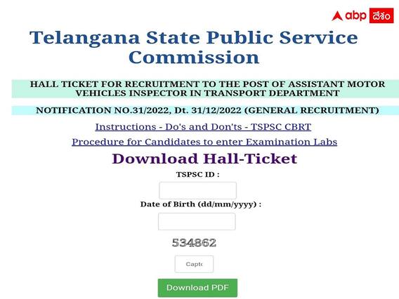 తెలంగాణలో అసిస్టెంట్ మోటార్ వెహికిల్ ఇన్స్పెక్టర్ (ఏఎంవీఐ) పోస్టుల భర్తీకి నిర్వహించనున్న నియామక పరీక్ష హాల్టికెట్లను బుధవారం (జూన్ 21) టీఎస్పీఎస్సీ విడుదల చేసింది. అధికారిక వెబ్సైట్లో హాల్టికెట్లను అందుబాటులో ఉంచింది. ఏఎంవీఐ పోస్టులకు దరఖాస్తు చేసుకున్న అభ్యర్థులు తమ టీఎస్పీఎస్సీ ఐడీ, పుట్టినతేది వివరాలు నమోదుచేసి హాల్టికెట్లు డౌన్లోడ్ చేసుకోవచ్చు. పరీక్ష సమయానికి 45 నిమిషాల ముందువరకు హాల్టికెట్లు అందుబాటులో ఉంటాయని టీఎస్పీఎస్సీ తెలిపింది. హాల్టికెట్లో సూచించిన నిబంధనలను అభ్యర్థులు కచ్చితంగా పాటించాలని కమిషన్ కోరింది. అభ్యర్థుల ప్రాక్టీసు కోసం వెబ్సైట్లో మాక్టెస్ట్ లింకు అందుబాటులో ఉంది.