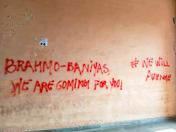 "బ్రాహ్మణులు ఈ క్యాంపస్ను విడిచిపొండి", "There Will Be Blood", "బ్రాహ్మణులారా, భారత్ను విడిచిపొండి", "బ్రాహ్మణులారా, వైశ్యులారా, మేం మీ కోసం వస్తున్నాం. ప్రతీకారం తీర్చుకుంటాం" అని ఇలా కొంతమంది గోడలపై రాశారు.