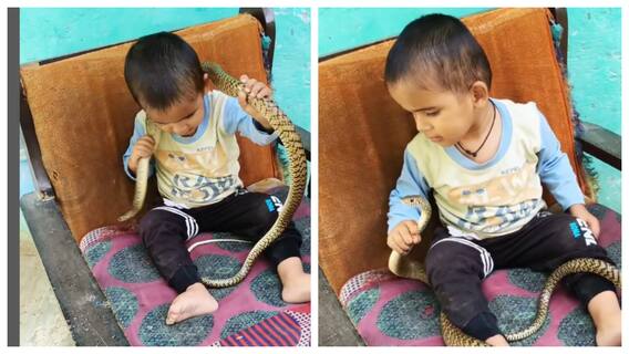ఇలా ఆడుకున్న టైంలో పాము ఒకసారి బాలుడు పాము తల పట్టుకుంటుండగా నాలుక తీస్తుంది. దీన్ని గమనించిన బాలుడు ఒక్కసారి భయపడిపోయి పాములు పక్కకు వదిలేసి వెళ్లిపోయే ప్రయత్నం చేస్తాడు. మళ్లీ కాసేపటికే దాన్ని పట్టుకునే ప్రయత్నించే లోపు పాము అక్కడి నుంచి జారుకుంటుంది.