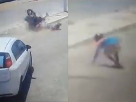 అయితే లేచి నిలబడేలోగా ఆ రైడర్కు మరో షాక్ తగిలింది. తన బైక్ ఢీకొనడం వల్ల ఆ స్తంభం కింద పడింది. సరిగ్గా ఆ బైకర్ లేస్తున్న సమయంలోనే అది అతని తలపై కూలింది. అయితే హెల్మెట్ ధరించి ఉండడం వల్ల లక్కీగా మళ్లీ అతని ప్రాణాలు మిగిలాయి.