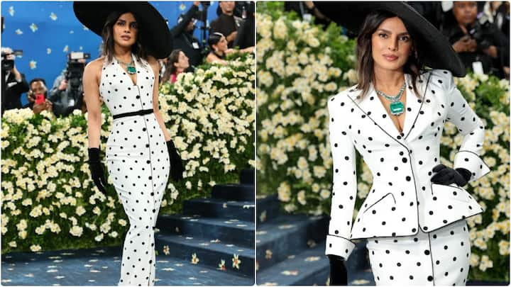 గ్లోబల్ హీరోయిన్ ప్రియాంక చోప్రా 5వసారి మెట్ గాలా ఈవెంట్కు హాజరైంది. ఈసారి రెట్రో లుక్లో వచ్చింది. తెల్లని డ్రెస్పై బ్లాక్ డాట్స్తో ఈ డ్రెస్ని రూపొందించారు డిజైనర్స్.