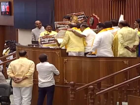 సస్పెండ్ చేసినప్పటికీ టీడీపీ సభ్యులు బయటకు వెళ్లేందుకు నిరాకరించారు. ప్రభుత్వానికి, స్పీకర్కు, సీఎంకు వ్యతిరేకంగా నినాదాలు చేస్తూ చంద్రబాబుపై పెట్టిన కేసులు విత్డ్రా చేసుకోవాలని డిమాండ్ చేశారు. ఇలా గందరగోళం నడుస్తున్న టైంలో స్పీకర్ సభను టీ బ్రేక్ కోసం వాయిదా వేస్తున్నట్టు ప్రకటించారు.