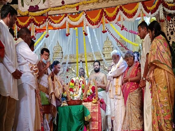 Srivari Kalyanam : అమెరికాలోని శాన్ఫ్రాన్సిస్కో బే ఏరియాలో టీటీడీ ప్రవాసాంధ్ర తెలుగు సొసైటీ ఆధ్వర్యంలో ఆదివారం తెల్లవారుజామున(భారత కాలమానం ప్రకారం) శ్రీనివాస కల్యాణం కన్నుల పండువగా నిర్వహించారు. ఇండియన్ కమ్యూనిటీ సెంటర్లో జరిగిన స్వామివారి కల్యాణానికి పెద్ద సంఖ్యలో భక్తులు హాజరయ్యారు. స్వామివారి కల్యాణోత్సవం నిర్వహించారు. కల్యాణోత్సవం ప్రారంభానికి ముందు అన్ని వస్తువులను, ప్రాంగణాలను శుభ్రపరచడానికి నిర్వహించే పవిత్ర కర్మ పుణ్యాహవాచనం పండితులు నిర్వహించారు.