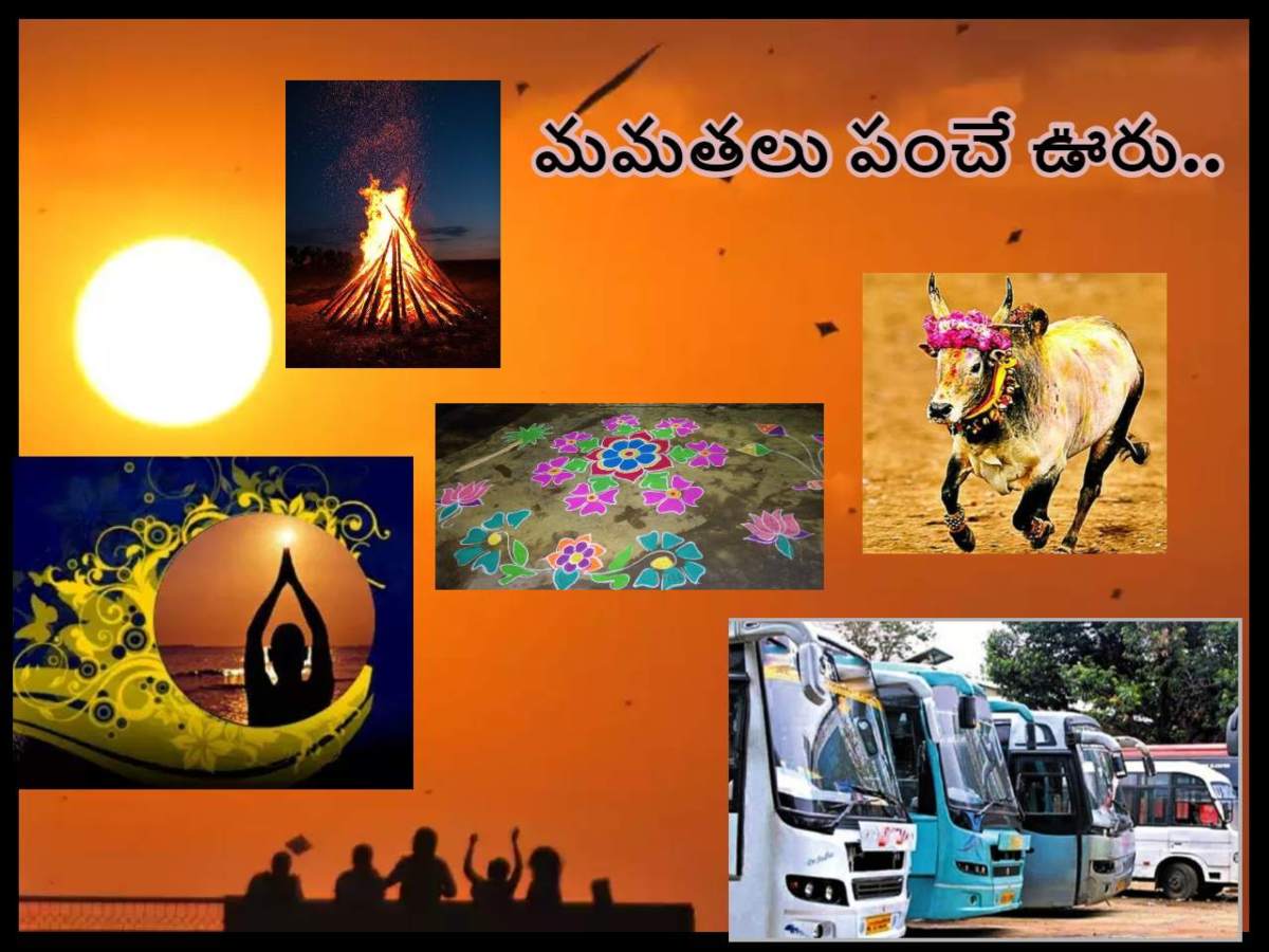 నగరాల్లో ఏ ఇంట్లో ఎవరున్నారో కూడా తెలియదు..అంతెందుకు పక్కింట్లో కూడా ఎవరున్నారో అర్థమేకాదు. పండుగ, పబ్బం, సందడి ఏమీ ఉండదు. పైగా ప్రాంతాల, మతాలు, కులాలు అంటూ కొన్ని అడ్డుగోడలు ఇంకా ఏ మూలో మిగిలే ఉన్నాయి. ఇలాంటి వాతావరణం నుంచి పుట్టిపెరిగిన ప్రాంతాలకు వెళ్లి పండుగల చేసుకోవడం కన్నా ఆనందం ఇంకేముంటుంది. పల్లెటూర్లు కూడా అప్పటిలా లేవు మారిపోయాయి అని అనేవారూ ఉన్నప్పటికీ...నగరాలతో పోల్చుకుంటే చాలా ఆనందాలు పల్లెటూర్ల సొంతం. అందుకే సొంతూర్లకు ఎంత దూరంలో ఉన్నా..సంక్రాంతి వచ్చేసరికి పల్లెటూర్లకు పరుగులు తీస్తారు. ఊరుని తలుచుకోగానే వచ్చే ఆనందం ఒకెత్తైతే..పుట్టిన ఊరి మట్టివాసన తగలగానే ఆ ఉత్సాహమే వేరు. పంటపొలాల చుట్టూ పరుగులు పెట్టిన జ్ఞాపకాలు, చెరువుల్లో ఈతలు, చిన్ననాటి స్నేహితులతో ముచ్చట్లు...ఇలా ఎన్నో తీపి గుర్తులను మనతో పాటూ తీసుకెళ్లి.. మరిన్ని జ్ఞాపకాలను పోగుచేసే పండుగే సంక్రాంతి.