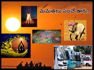 Makar Sankranti 2023: సూర్యుడి లేలేత కిరణాలు..మెరిసే మంచుబిందువులు...కోడి కూతలు..ఎర్రగా పండిన గోరింటాకు చేతులు.. వెచ్చని బావి నీళ్లు..బంతి చామంతిల కమ్మని సువాసనలు..రంగవల్లులు..గొబ్బిళ్లు..భోగిమంటలు..గంగిరెద్దులూ, హరిదాసులు.. పిండివంటలు.. సంప్రదాయ దుస్తులు..కొత్త అల్లుళ్లు.. కొన్ని ప్రాంతాల్లో కోడిపందాలు, ఎడ్ల పందాలు, పశువుల పూజలు..ఇంకా చెప్పుకుంటూ పోతే లిస్టు పెద్దదే ఉంది. ఇవన్నీ సంక్రాంతి వేళ పల్లెటూర్లలో కనిపించే దృశ్యాలు..ఇన్ని ఆనందలు కాంక్రీట్ జంగిల్లో సాధ్యమవుతాయా?...అందుకే సంబరాల సంతోషాన్ని క్షణం క్షణం రెట్టింపు చేసే పల్లెటూర్లకి పరుగులుతీస్తారంతా.