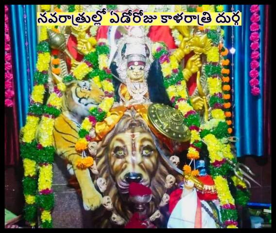 Sri kalaratri durga Devi Alankaram: నవరాత్రి ఏడవ రోజు కాళరాత్రి : నల్లని రూపుతో, విరబోసుకున్న కేశాలతో, మెరుపులు చిమ్మే హారంతో కాళరాత్రిని తలపించే దేవి కాళరాత్రి. తనని ఆరాధించినవారి మనసులోని సకల భయాలనూ రూపుమాపే చల్లని తల్లి. గార్ధభ వాహనం మీద కనిపించే ఈ తల్లి పేరు వింటే భూతప్రేతాలు సైతం దరిచేరవని భక్తుల విశ్వాసం.