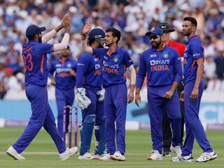 భారత్ కెప్టెన్ రోహిత్ శర్మ టాస్ గెలిచి బౌలింగ్ ఎంచుకున్నాడు. దీంతో మొదట బ్యాటింగ్ చేసిన ఇంగ్లండ్ ఇన్నింగ్స్ తొమ్మిదో ఓవర్ వరకు సాఫీగానే సాగింది. ఓపెనర్ జేసన్ రాయ్ను (23: 33 బంతుల్లో, రెండు ఫోర్లు, ఒక సిక్సర్) అవుట్ చేసి హార్దిక్ పాండ్యా టీమిండియాకు తొలి వికెట్ అందించాడు. ఆ తర్వాత ఇంగ్లండ్ వికెట్లను తీసే బాధ్యతను స్పిన్నర్ చాహల్ తీసుకున్నాడు. కీలకమైన జానీ బెయిర్స్టో (38: 38 బంతుల్లో, ఆరు ఫోర్లు), జో రూట్ (11: 21 బంతుల్లో), బెన్ స్టోక్స్ల (21: 23 బంతుల్లో, మూడు ఫోర్లు) వికెట్లను చాహల్ తీసుకోగా... డేంజరస్ బట్లర్ను (4: 5 బంతుల్లో) షమీ అవుట్ చేశాడు. ఈ నాలుగు వికెట్లు ఏడు ఓవర్ల వ్యవధిలోనే పడ్డాయి. సగం జట్టు ఇంటి బాట పట్టేసరికి ఇంగ్లండ్ స్కోరు 102 పరుగులు మాత్రమే.