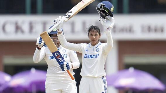 Shafali Varma Hits Maiden Double Century In First Test: దక్షిణాఫ్రికా(SA)తో జరుగుతున్న ఏకైక టెస్ట్ మ్యాచ్లో భారత మహిళలు అదరగొట్టారు. తొలి రోజే రికార్డుల మీద రికార్డులు సృష్టించారు. లేడీ సెహ్వాగ్ షెఫాలీ వర్మ(Shafali Varma)విధ్వంసానికి తోడు స్మృతి మంధాన( Smriti ) కళాత్మక ఇన్నింగ్స్ తోడు కావడంతో దక్షిణాఫ్రికా బౌలర్లు పూర్తిగా తేలిపోయారు. టీమిండియా ఓపెనర్లు భారీ స్కోరుకు బాటలు వేశారు. షెఫాలీ అద్భుత డబుల్ సెంచరీతో చెలరేగగా... స్మృతి మంధాన కూడా శతకొట్టింది. దీంతో తొలిరోజే భారత జట్టు నాలుగు వికెట్ల నష్టానికి 525 పరుగులు చేసింది. వుమెన్స్ క్రికెట్లో ఒకేరోజూ అత్యధిక పరుగులు చేసిన జట్టుగా భారత మహిళల జట్టు చరిత్ర సృష్టించింది. మహిళా క్రికెట్ చరిత్రలో అత్యధిక పరుగుల భాగస్వామ్యం నెలకొల్పిన ఓపెనింగ్ జోడిగానూ షెఫాలీ వర్మ-స్మృతి మంధాన చరిత్ర సృష్టించారు. ఇలా తొలి రోజే ఎన్నో రికార్డులు సృష్టించిన టీమిండియా... భారీ విజయానికి బాటలు వేసుకుంది.