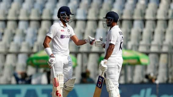 ఓవర్నైట్ స్కోరు 221/4తో టీమ్ఇండియా రెండో రోజు బ్యాటింగ్ ఆరంభించింది. కానీ కివీస్ హీరో అజాజ్ పటేల్ మళ్లీ చెలరేగాడు. ఓకే ఓవర్లో వరుస బంతుల్లో జట్టు స్కోరు 224 వద్ద రెండు వికెట్లు తీశాడు. 71.4వ బంతికి నైట్ వాచ్మన్ వృద్ధిమాన్ సాహా (27; 62 బంతుల్లో 3x4, 1x6)ను వికెట్ల ముందు దొరకబుచ్చుకున్నాడు. ఆ తర్వాతి బంతికి క్రీజులోకి వచ్చిన రవిచంద్రన్ అశ్విన్ (0)ను క్లీన్బౌల్డ్ చేసి షాకిచ్చాడు. అక్కడి నుంచి అక్షర్ పటేల్తో కలిసి మయాంక్ నిలకడగా ఆడాడు. స్పిన్ను చక్కగా ఎదుర్కొన్నాడు. వీరిద్దరూ ఏడో వికెట్కు అజేయంగా 61 పరుగుల భాగస్వామ్యం నెలకొల్పారు. దాంతో కోహ్లీసేన కాస్త పుంజుకొంది.