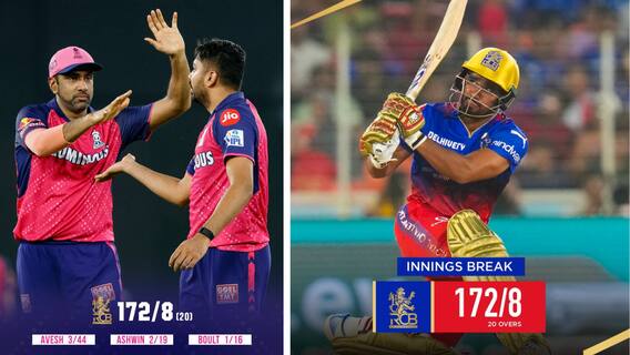 RCB vs RR 1st Innings Highlights: రాజస్థాన్ రాయల్ తో జరుగుతున్న నాకౌట్ మ్యాచ్ లో బెంగళూరు నామమాత్రపు స్కోర్ చేసింది. అహ్మదాబాద్లోని నరేంద్రమోదీ స్టేడియం బౌలింగ్ కు అనుకూలిస్తున్న వేళ బెంగళూరు బ్యాటర్ లని రాజస్థాన్ బౌలర్ లు కట్టడి చేసారు. బౌలర్లు అవేశ్ ఖాన్, ట్రెంట్ బౌల్ట్ , రవిచంద్రన్ అశ్విన్ కట్టుదిట్టంగా బౌలింగ్ చేశారు. విరాట్ కోహ్లీ, రజిత్ పాటిదార్ , లామ్రోర్ పరవాలేదనిపించారు, దీంతో నిర్ణీత 20 ఓవర్లలో 8 వికెట్ల నష్టానికి 172 పరుగులు చేసింది. పిచ్ బౌలింగ్ కు అనుకూలిస్తుండటంతో బెంగళూరు బౌలర్లు ఈ లక్ష్యాన్ని కాపాడుకోగలరో లేదో చూడాలి.